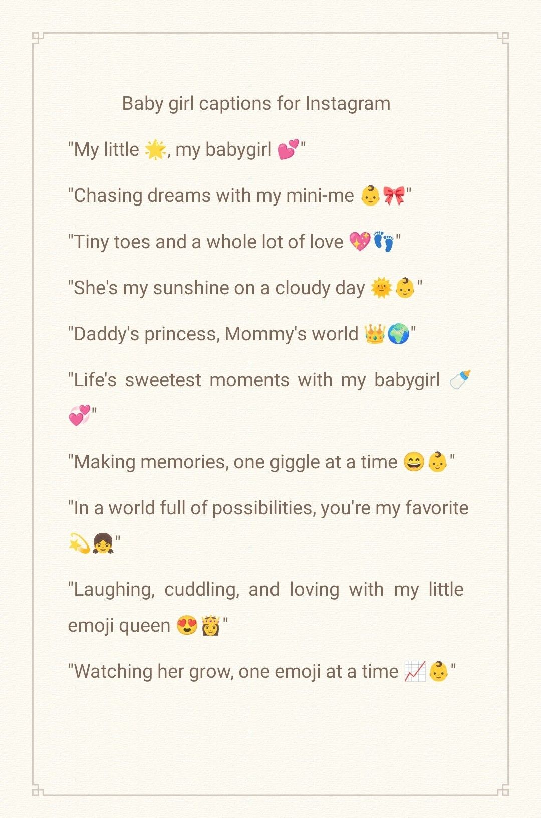 The examples above make for a decent enough springboard, but learning to. “we have no words to express our new joy of life.”. Web instagram captions for baby girl.