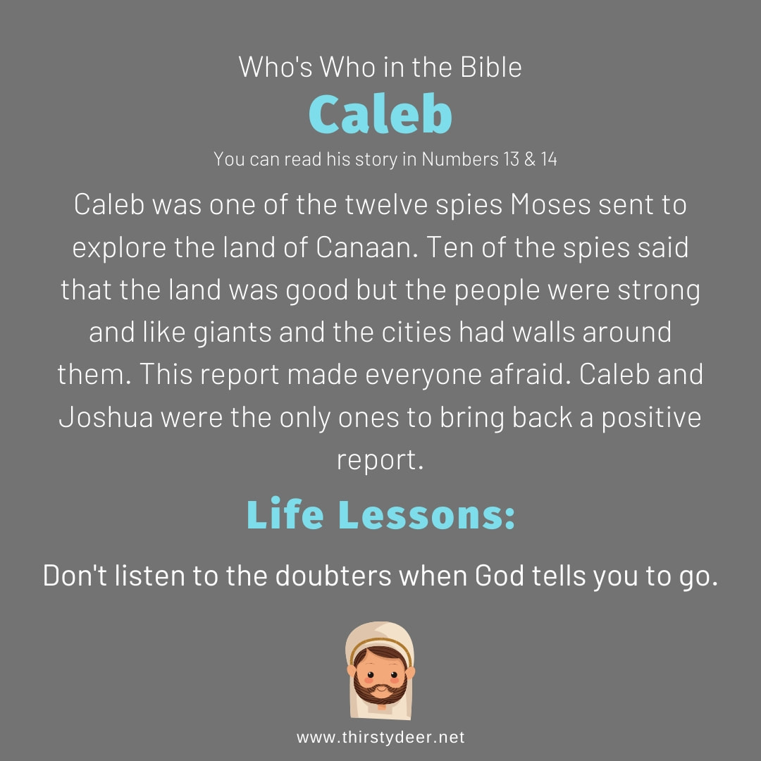 The story of caleb, a faithful man of god, begins in the book of numbers. While caleb does not have as many verses dedicated to him in the bible, what we are told in few words speaks volumes to who caleb was as a dedicated servant of god. Of the 12 spies, only caleb and joshua brought back an encouraging report.